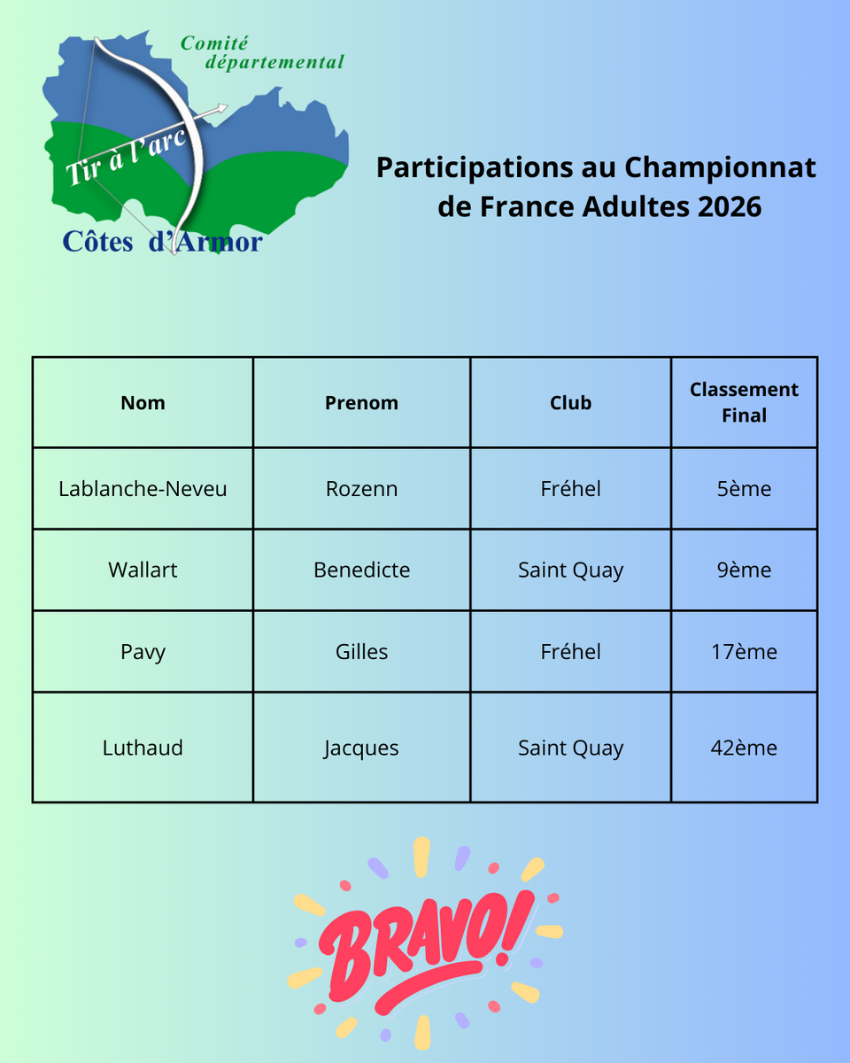 Et c'est au tour des Adultes d'être mis à l'honneur, félicitation à vous !